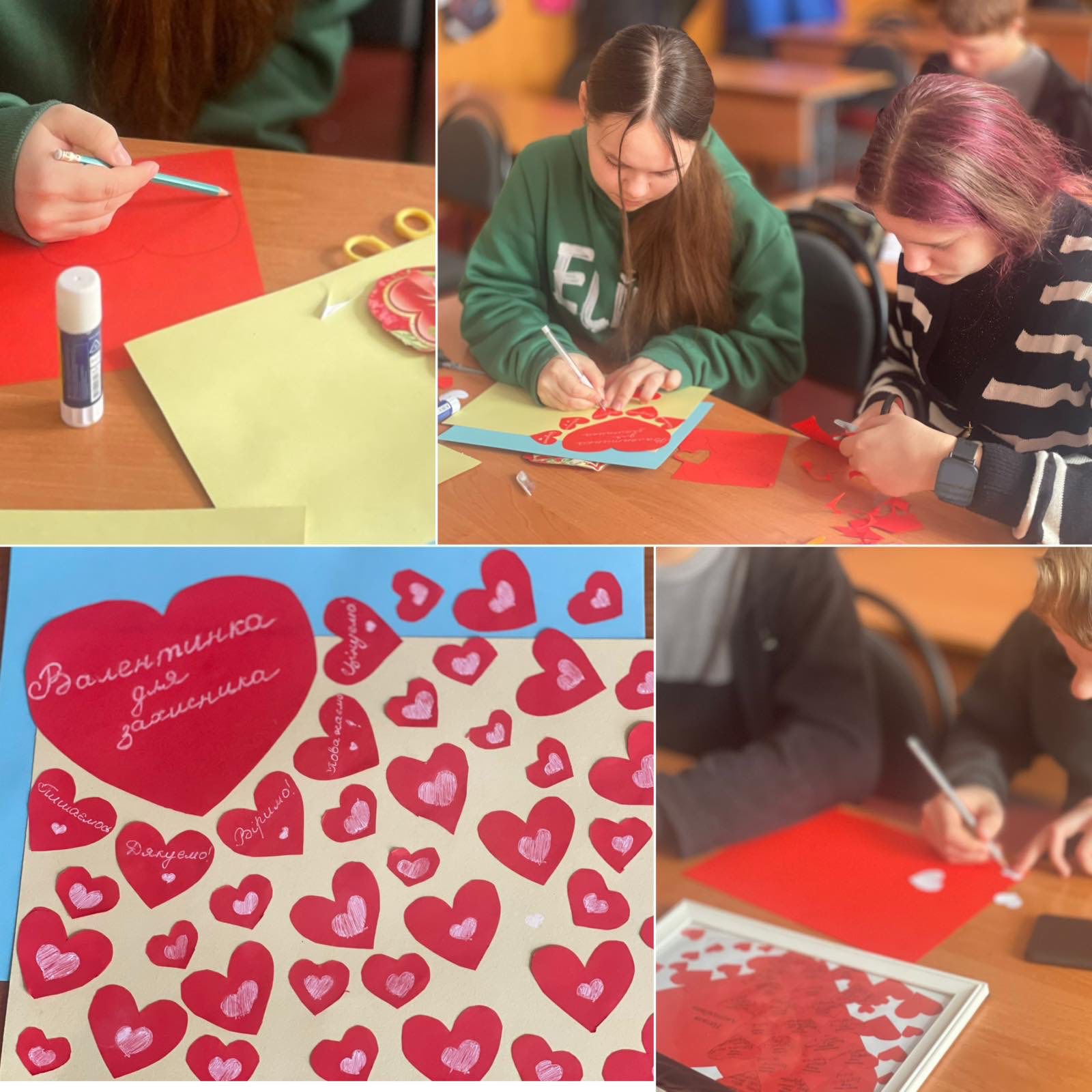 Напередодні 14 лютого учні 3Б,4Б,7Б класів долучилися до акції «Валентинка для ЗАХИСНИКА» .